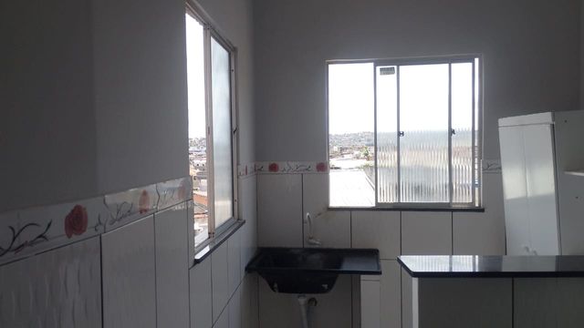 Sala, cozinha americana, quarto e banheiro.